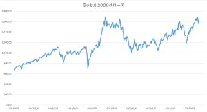 2025年11年28日の米国小型成長株インデックス(Russell 2000 Growth)は、1674.16で終わりました。一週間前に比べて+99.37(+6.31%)と急反発しました。