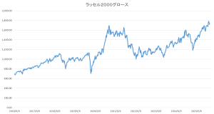 主力株(といっても一部の超大型AI、IT銘柄でインデックスが動かされている)に比べて、米国小型成長株は相対的に有利な点があるとおもっています。