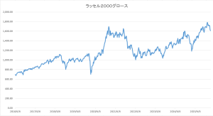 2026年3年13日の米国小型成長株インデックス(Russell 2000 Growth)は、1609.86で終わりました。一週間前に比べて-25.13(-1.54%)と続落しました。